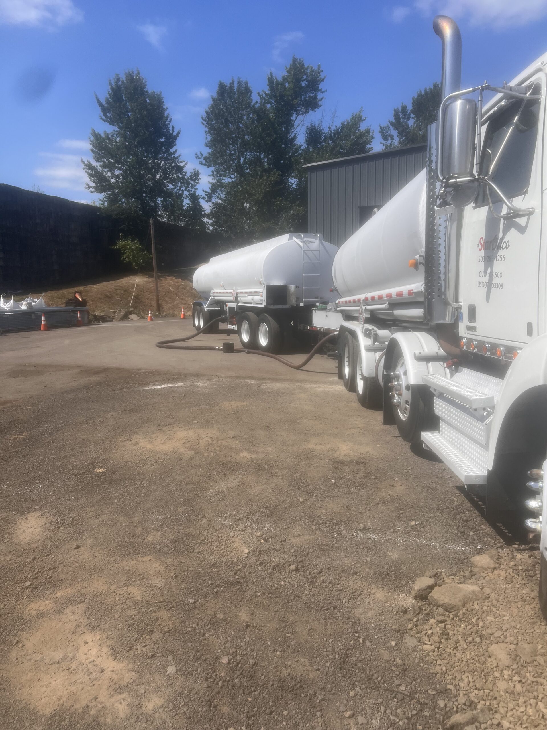 A Star Oilco tractor trailer delivers bulk fuel at a commercial facility providing large scale diesel supply for industrial operations