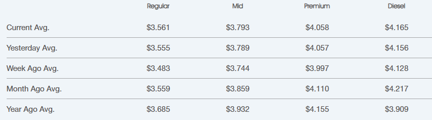 Crude oil is the main ingredient for gasoline and diesel. Per AAA, on average about 50% of what you pay at the pump is the price of crude oil, breaking down as 25% refining, 11% distribution & marketing, and 14% taxes – a helpful breakdown for consumers wondering why they are paying the prices that they pay. Crude Oil is currently trading at $61.95/barrel compared to $59.43/barrel last week and $72 a year ago.